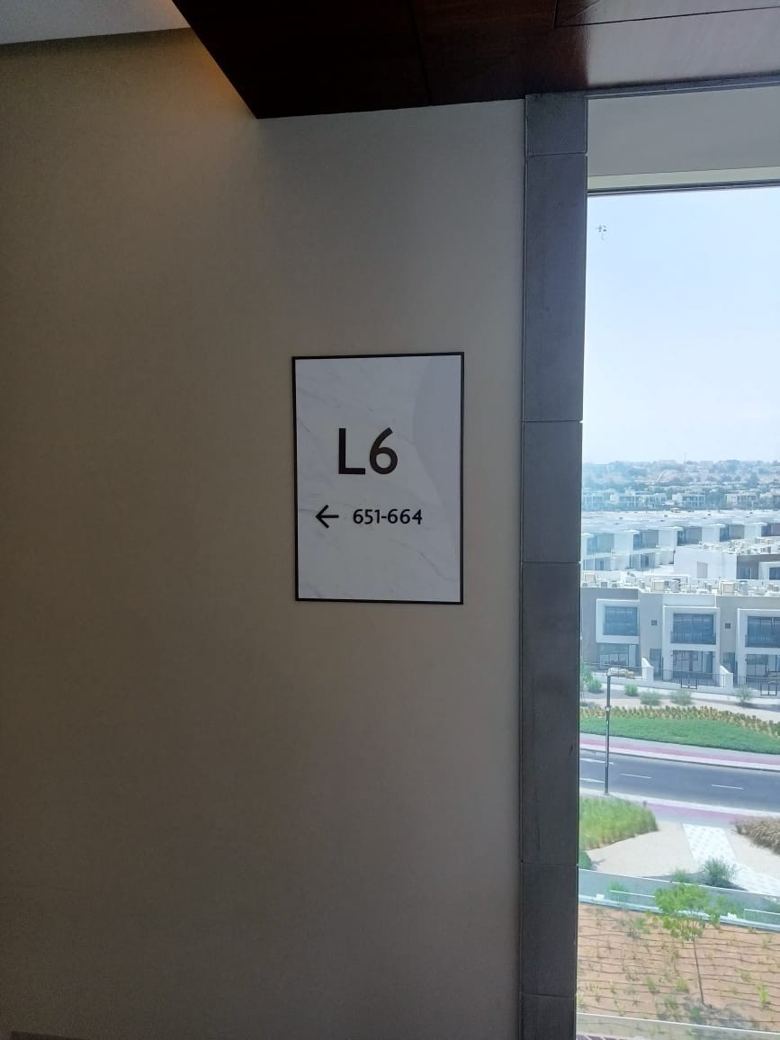 Signage is installed across every guest touchpoint of a resort and spa, including hotel guest rooms, public areas, standalone villas, and chalets. There are four distinct building types, each with its own wayfinding logic and design language. TBS fabricated the entire package using brass, 6mm clear glass, and 3mm aluminum with LED illumination and etching. These materials match the coastal-grade specifications of Bab Al Qasr, built to withstand salt, sun, and humidity on the RAK waterfront. The project took three months for fabrication and three months for on-site delivery and installation. The entire process from order to handover was completed in seven months.