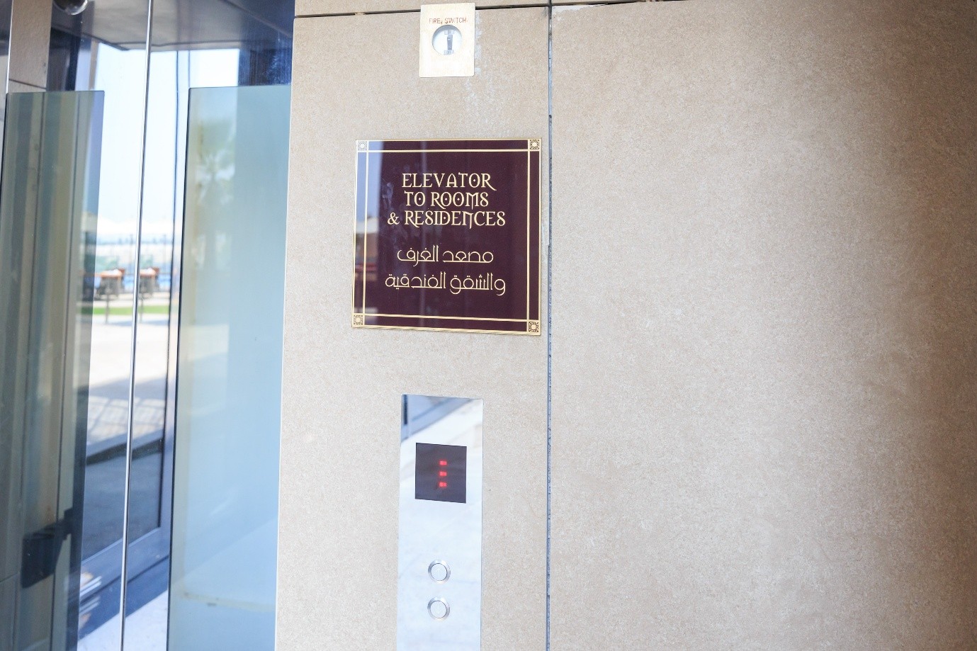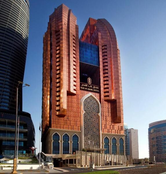 The hotel’s signage likely reflects the unique blend of modern and traditional Arabian design potentially using a combination of modern fonts and traditional Arabic calligraphy or motifs.