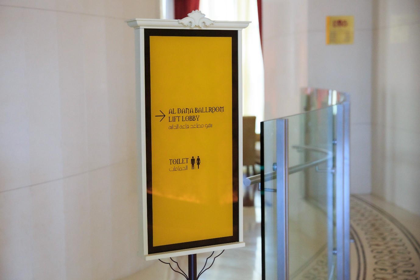 Bab Al Qasr Hotel, a luxurious 5-star property located on Abu Dhabi’s iconic Corniche, features signage that reflects its opulent Arabian aesthetic and modern elegance. The signage is designed to complement the hotel’s grand architecture and Arabesque interiors, blending traditional motifs with contemporary clarity to guide guests seamlessly through the property.
