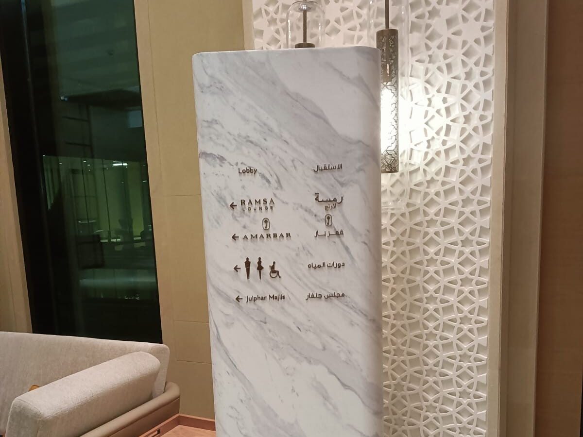 signages are likely designed to endure harsh coastal elements such as saltwater corrosion, intense sunlight, and high humidity, which are common in Abu Dhabi.